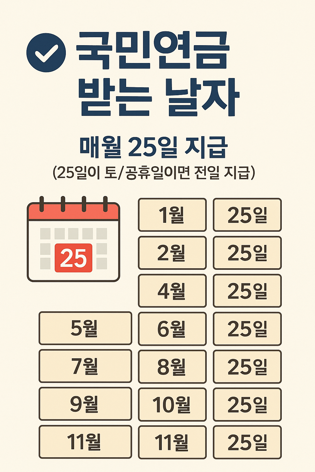 2025년 월별 국민연금 지급일 달력 인포그래픽으로 제작하면 가독성이 좋아요