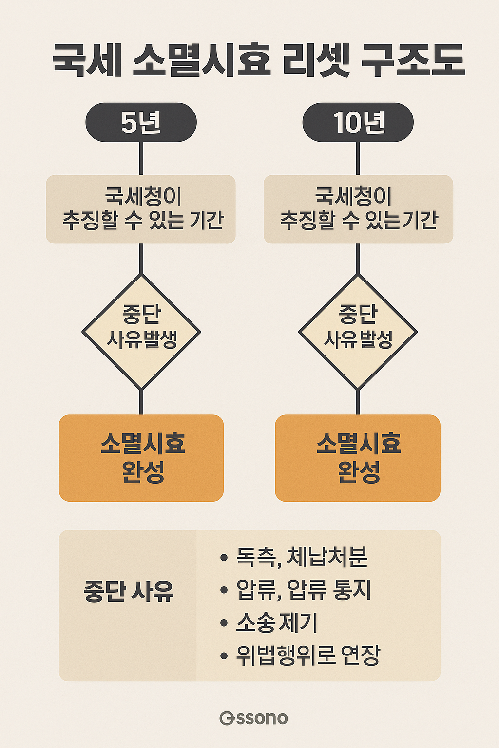 인포그래픽 제안 : ‘국세 소멸시효 리셋 구조도’ – 5년·10년 시효 흐름 + 중단 사유 도식화