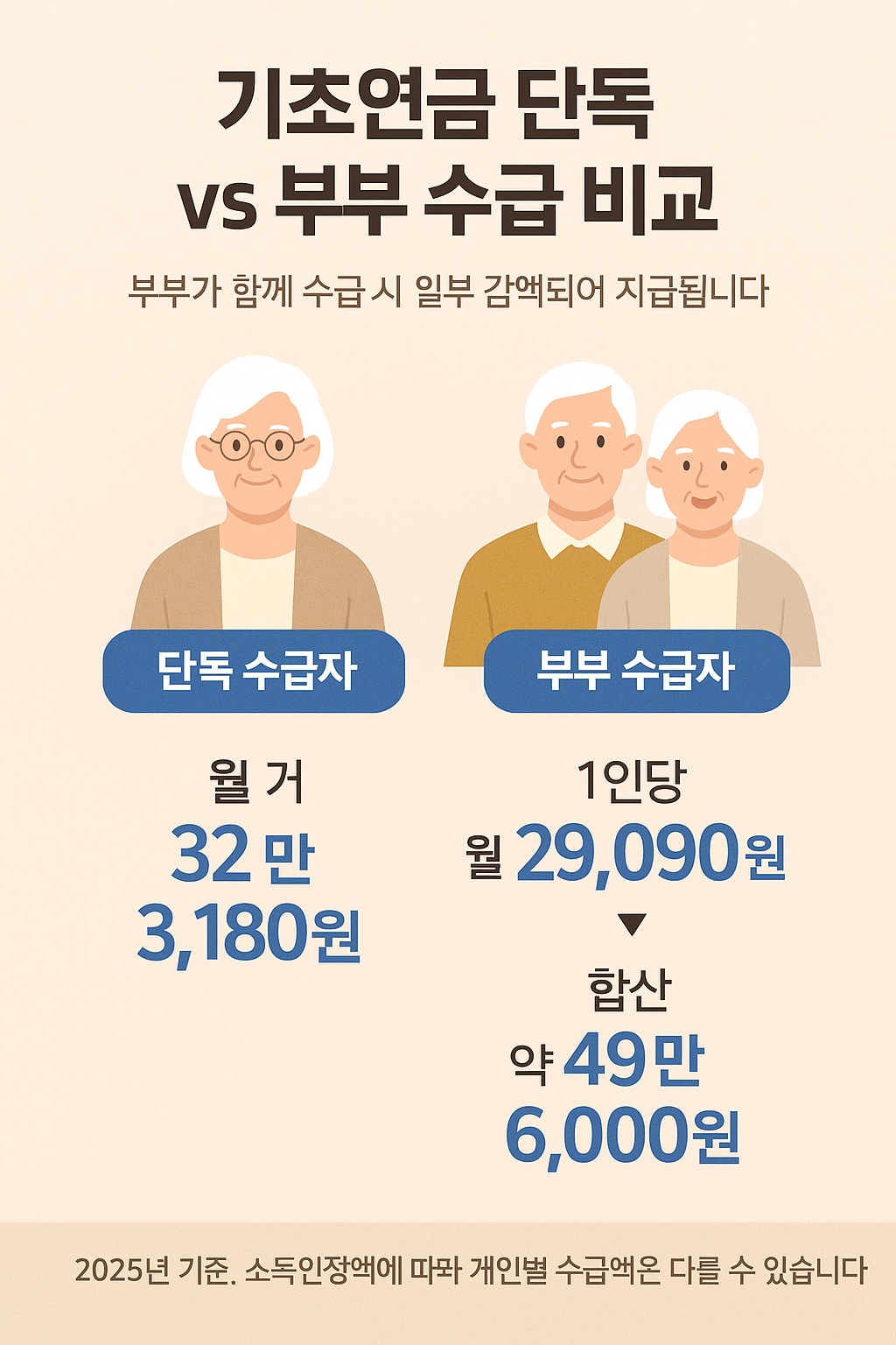 기초연금 단독 vs 부부 수급 비교 인포그래픽 제안