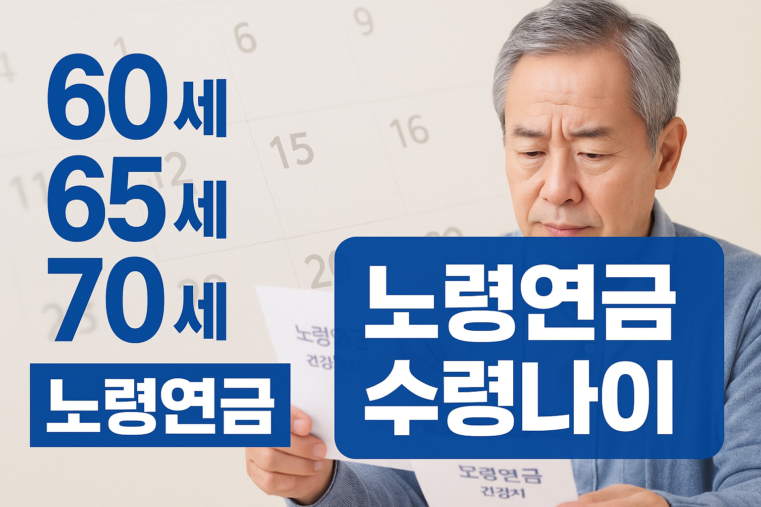 - 기본 수령 나이: 만 60~65세 (출생연도에 따라 차등)