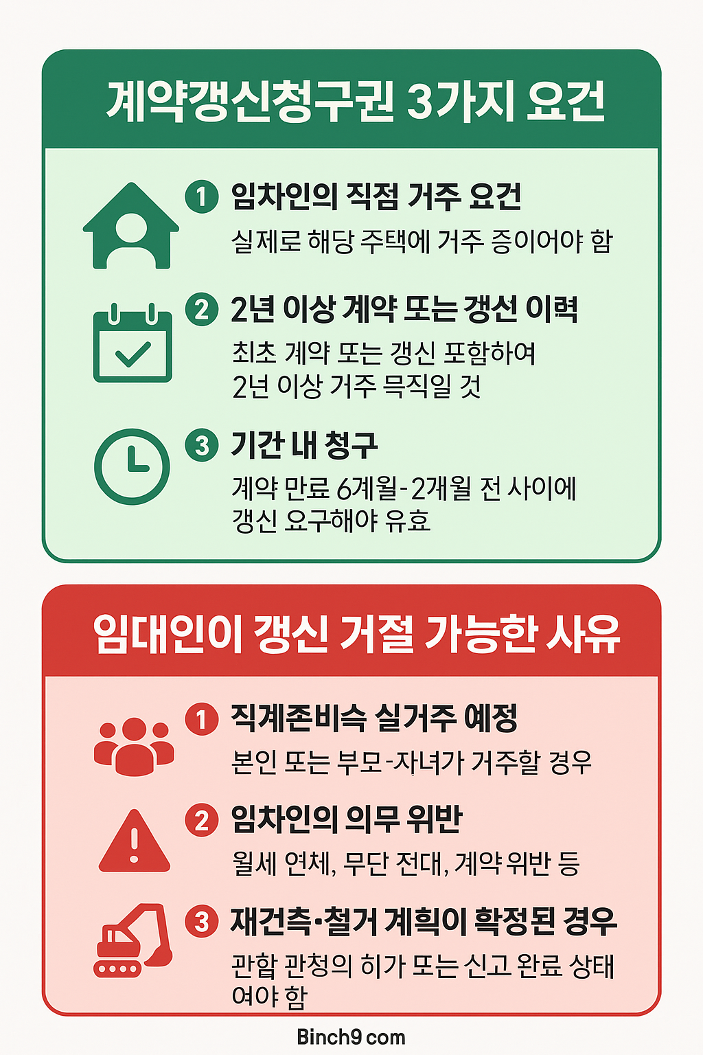 - 임대인이 법에서 정한 거절 사유(직접 거주, 연체 등)가 없을 것