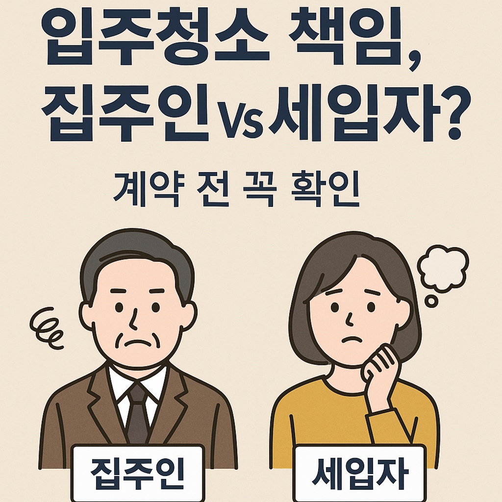 이럴 때 ‘입주청소’ 책임이 집주인인지, 세입자인지 헷갈리죠. 법적으로는 어느 쪽이 부담해야 하는지, 부동산 현장에서는 어떻게 처리하는지, 그리고 분쟁을 예방하려면 계약서에 무엇을 적어야 하는지까지 정리했습니다.
