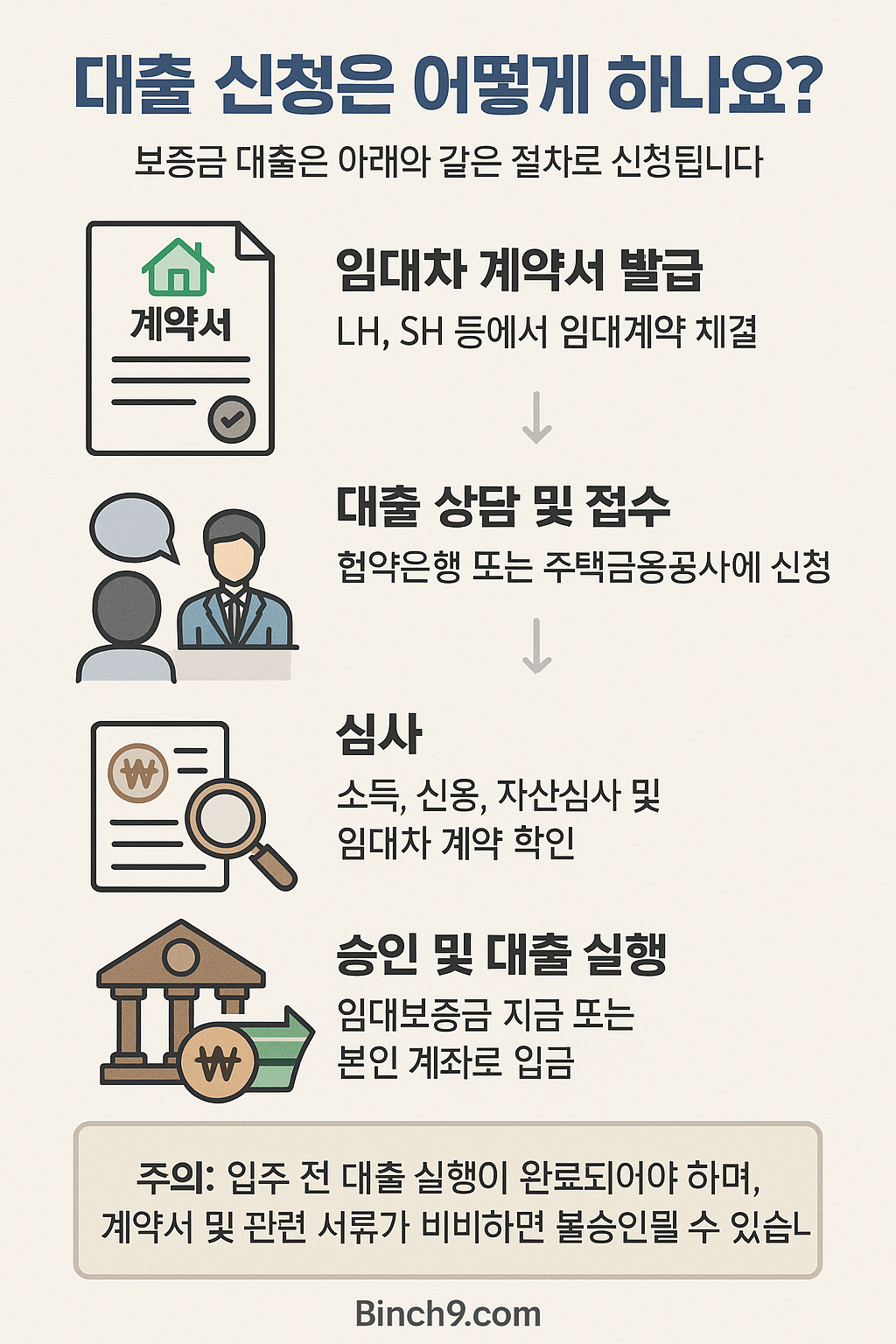 보증금 대출은 아래와 같은 절차로 신청됩니다.