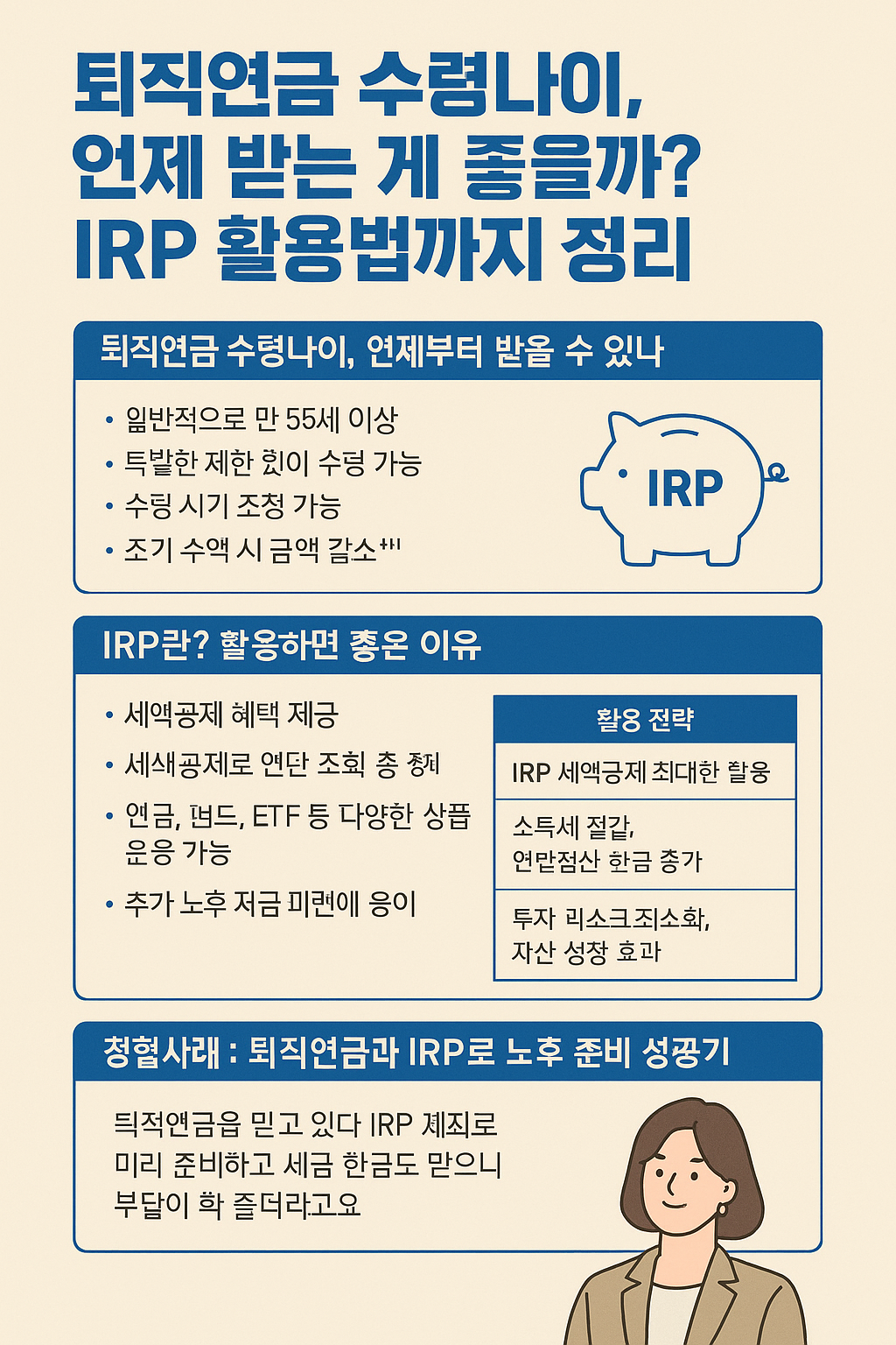 연관키워드 #퇴직연금 #퇴직연금수령나이 #IRP #IRP활용법 #노후준비 #세액공제 #50대재테크 #연금전략